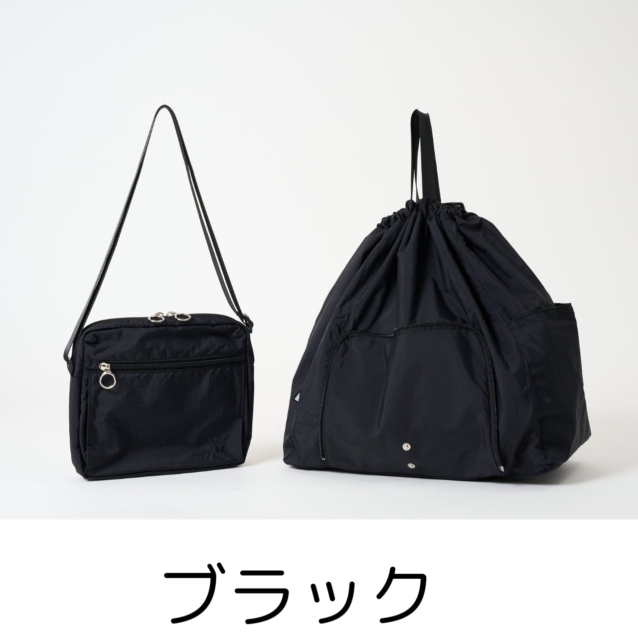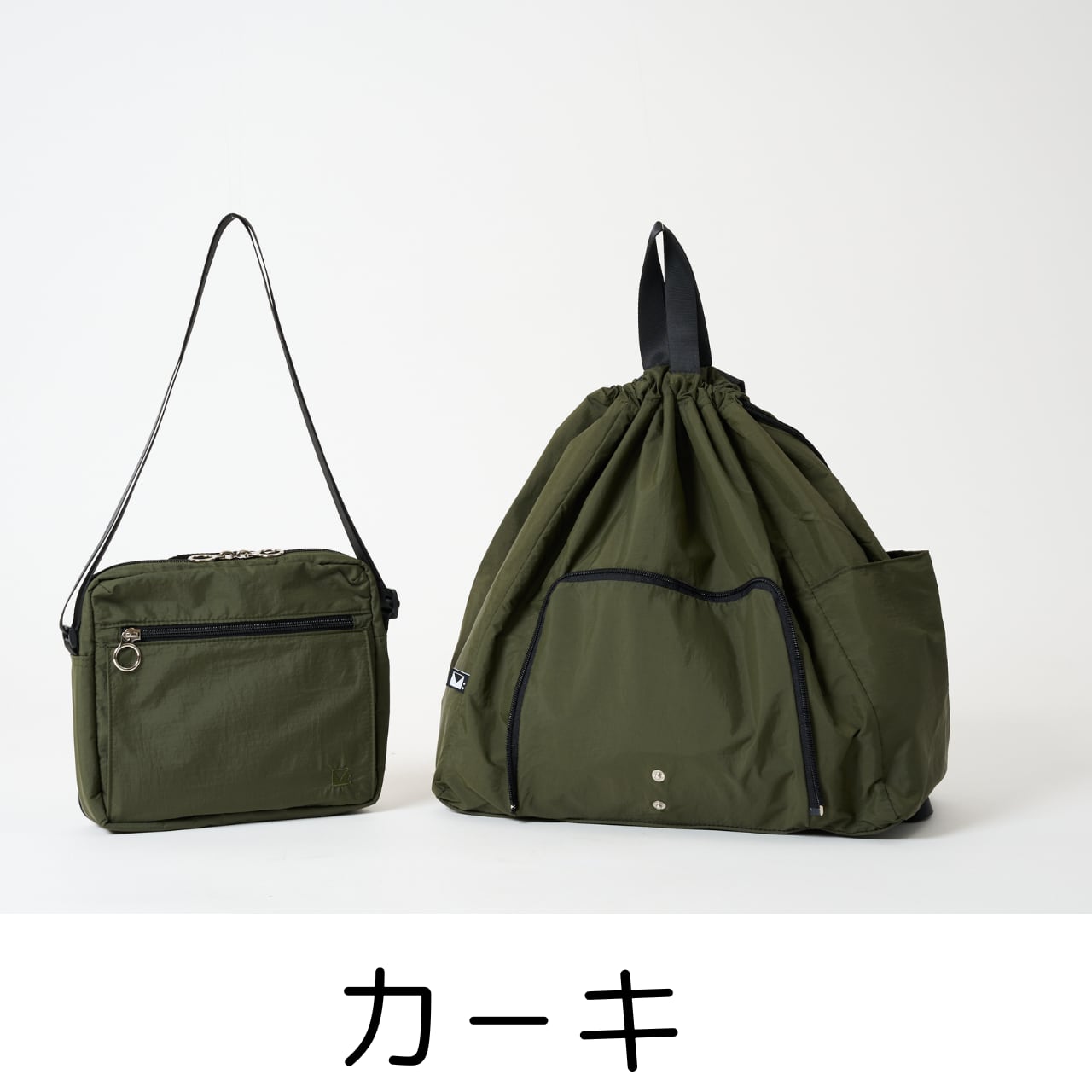 - ショルダーバッグ:縦20㎝×横23㎝幅5㎝(リュック装着時7.5㎝)、ショルダー2.5㎝幅(最長140㎝)